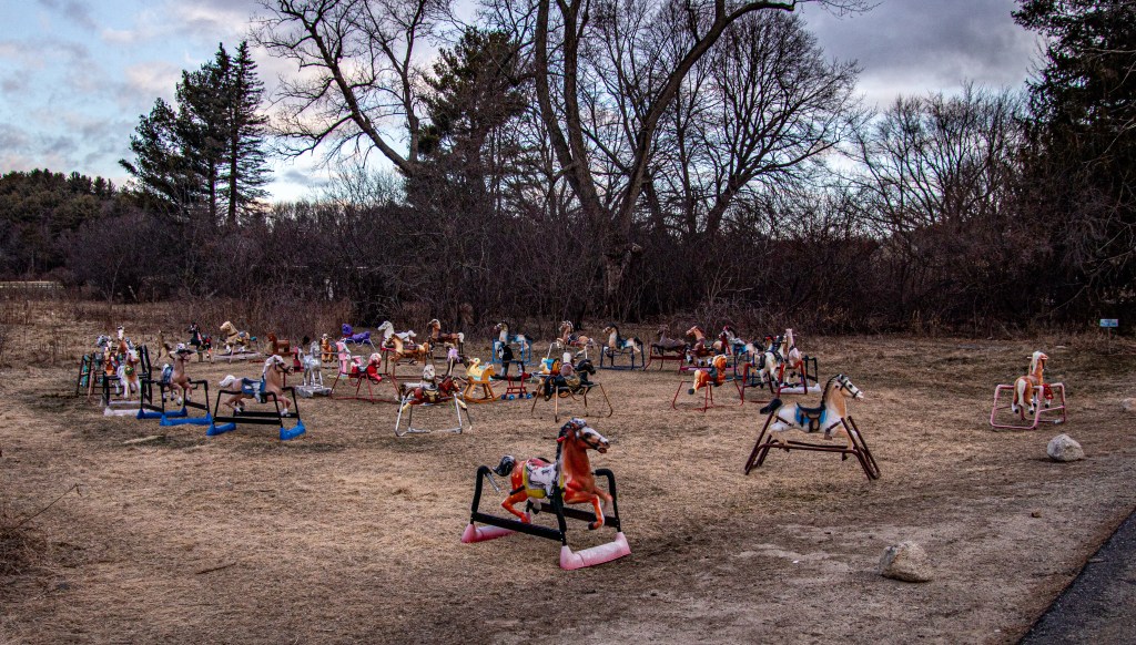 Located on a desolate road in Lincoln, MA, Ponyhenge is a fun site for people of all ages. The ride on toys and hobby horses aren’t just for children. In fact, it may be the appeal to your inner child and the nostalgia of the attraction that makes this attraction so special.